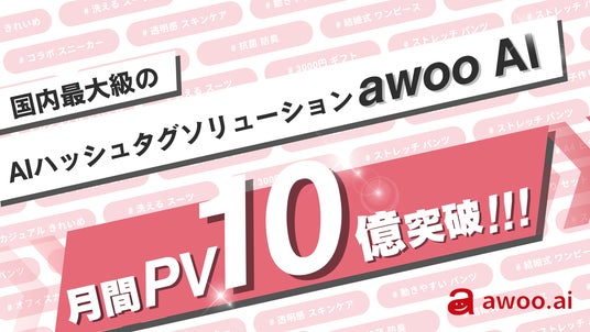 本日、国内最大級のAIハッシュタグソリューション『awoo AI』を提供するawoo株式会社(本社:東京都渋谷区、Japan Country Manager : 遠藤 光一)は、同ソリューションを導入している企業の合計月間PV数が10億PV※を突破したことをお知らせいたします。