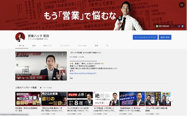 2019年9月5日より動画投稿をスタートさせた「営業ハック笹田」も2022年で3周年を迎えました。「テレアポ」「飛び込み営業」「商談のやり方・進め方」「営業のコツ」など営業パーソンに向けてお悩みが0になるような発信をしております。2022年5月18日にはチャンネル登録者数1万人も突破し、9月5日時点では1.19万人もの方にご登録いただいております。