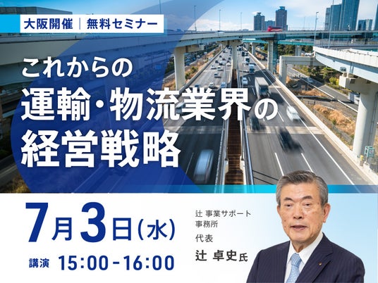株式会社ストライク(本社:東京都千代田区、代表取締役社長:荒井邦彦)は7月3日(水)に、運輸・物流企業関係者を対象としたセミナー『これからの運輸・物流業界の経営戦略』を大阪新阪急ホテルにて開催いたします。