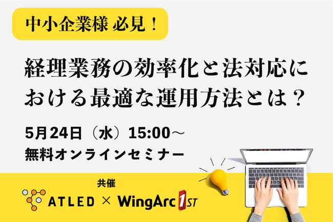 ワークフローソリューションベンダーであるエイトレッド(本社:東京都渋谷区、代表取締役社長:岡本 康広 以下、エイトレッド)は、ウイングアーク1st株式会社と共催で『中小企業様必見!経理業務の効率化と法対応における最適な運用方法とは?』を2023年5月24日(水)にオンラインにて開催いたします。