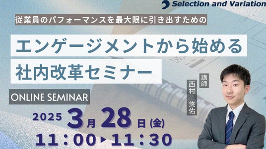 https://sele-vari.co.jp/ )は『従業員のパフォーマンスを最大限に引き出すための 「エンゲージメントから始める社内改革セミナー」』セミナーを2025年3月28日(金)11:00~11:30に開催することをお知らせいたします。