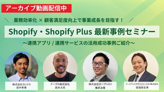 ECサイトの運営代行サービスを展開しているマーケティングアソシエーション株式会社(本社:東京都台東区 代表取締役:中園広和、以下当社)は、共催ウェブセミナー「Shopify・Shopify plus最新事例セミナー~連携アプリ/連携サービスの活用成功事例ご紹介~」のアーカイブ動画を本日2024年12月17日より公開いたしました。