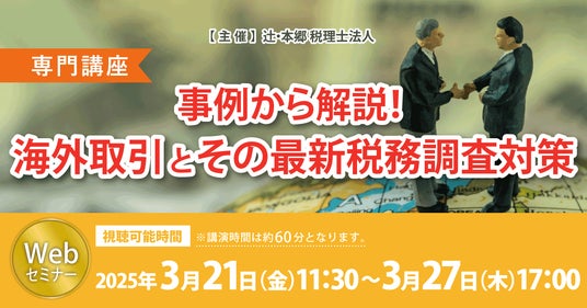 辻・本郷 税理士法人(本社:東京都新宿区、理事長:桑木小恵子)は、2025年3月21日(木)より「【専門講座】事例から解説! 海外取引とその最新税務調査対策」セミナーを開催いたします。