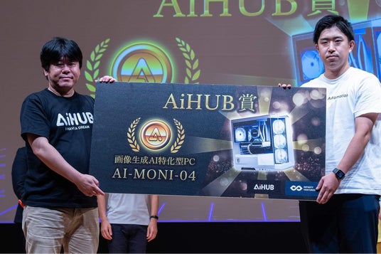 ピッチ終了後、会場からの投票を最も多く獲得した優勝者と6名の審査員による審査員賞を決定いたしました。優勝者のAVA Intelligence 宮崎 祐一氏には、本セッションに協賛いただいた日本マイクロソフト様よりAzure(Azure OpenAI Service 含む) 最大1,800万円までの開発環境整備のための費用支援が提供され、審査員賞を受賞したファースト・オートメーション 伊藤 雅也氏には、AIHUB様より画像生成AI特化型PC「AI-MONI-04」が特典として提供されました。