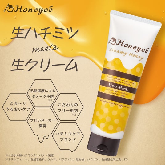 今回は、今年9月に発売した累計販売実績100万本*1 の大人気ヘアマスクの改良復刻品『ハニーチェ ダメージリペア ヘアマスクY R』、そして『ハニーチェ クリーミーハニー ヘアマスク』。