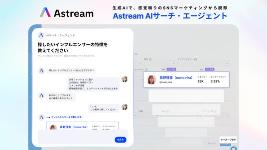 SNSマーケティングツール「Astream」を提供する株式会社A(本社:東京都渋谷区、代表取締役:中嶋泰)は、SNSプロモーションにおけるマーケティング戦略の強化とインフルエンサー検索の効率向上を目的に、生成AIを活用した新機能「Astream AIサーチ・エージェント」の開発に着手いたしました。本プロジェクトは、AIを活用したビジネスデザインや実装に強みを持つ株式会社Everforth(本社:東京都渋谷区、代表取締役:森下将憲)と共同で進めており、2025年秋の提供開始を予定しています。