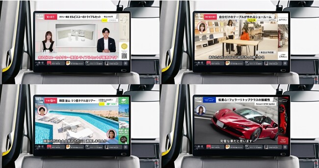 移動時間の情報番組「HEADLIGHT」は、2022年10月に放映を開始しました。MCには、フリーアナウンサーとして多方面で活躍する青木源太アナウンサーと山崎怜奈さんを起用し、タクシーで移動中の皆様に学びや気付きとなる情報を届けるべく、各週毎にコンテンツを制作しています。放映を開始して以来、僅か半年でBtoCからBtoBまで様々な業種・業態の企業様にご利用いただいており、利用企業数は30社以上に及びます。