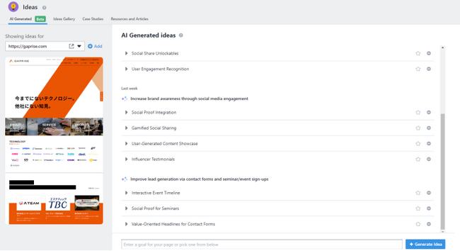 デジタルビジネス支援を行う、海外SaaS商社の株式会社ギャプライズ(本社:東京都千代田区、代表取締役 CEO:甲斐 亮之、以下「当社」)は、当社が提供するABテストツールVWO(ブイダブリューオー)がAIによるABテストアイディアの生成を行う新機能を実装した事をお知らせします。