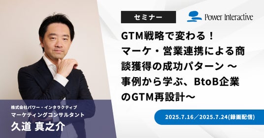 株式会社パワー・インタラクティブは、『GTM戦略で変わる!マーケ・営業連携による商談獲得の成功パターン ~事例から学ぶ、BtoB企業のGTM再設計~』を、7月16日と7月24日に録画配信します。