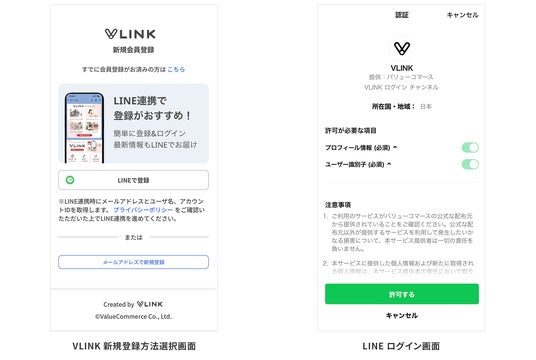 バリューコマース株式会社バリューコマース株式会社(本社:東京都千代田区、代表取締役社長 最高経営責任者:香川 仁)は、SNSの情報を無料でまとめられるサービス『VLINK(ブイリンク)』(https://vlink.design/)にLINEアカウントを利用したソーシャルログイン機能(LINEログイン機能)を導入したことをお知らせいたします。本機能により登録率が従来比 約61%※アップし、ユーザーの利便性に寄与しました。(※集計期間:2024年6月1日~7月3日)