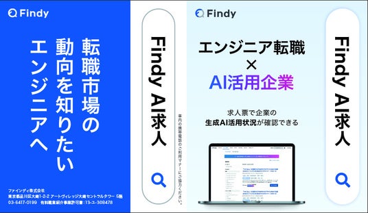 エンジニアプラットフォームを提供するファインディ株式会社(東京都品川区、代表取締役:山田 裕一朗、以下「当社」)は、2025年3月よりIT/Webエンジニアの転職サービス「Findy」に利用企業の「生成AI活用状況」を可視化する検索機能を追加しました。その結果、わずか2ヶ月で「生成AI活用企業(※1)」求人票数が2,900件を突破したことを発表します。さらなる認知拡大のため、都営地下鉄の吊手広告掲載を開始します。