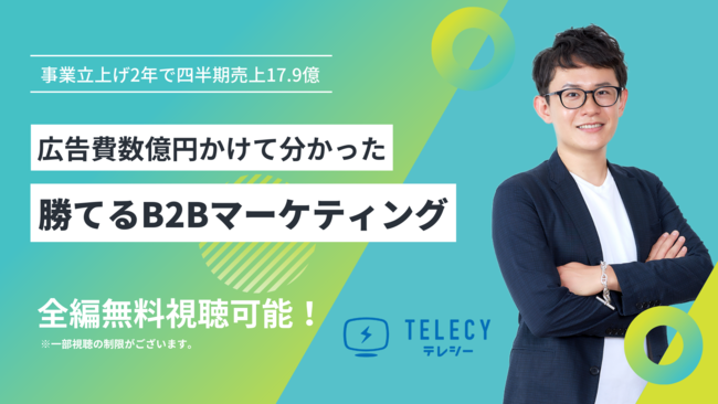 https://telecy.tv/ )を運営する株式会社テレシー(東京都渋谷区、代表取締役CEO:土井 健)は、 12月21日(水)までの期間限定で、「事業立上げ2年で四半期売上17.9億円を達成したB2Bマーケテイング」セミナーを、弊社サービスサイトにて公開しております。