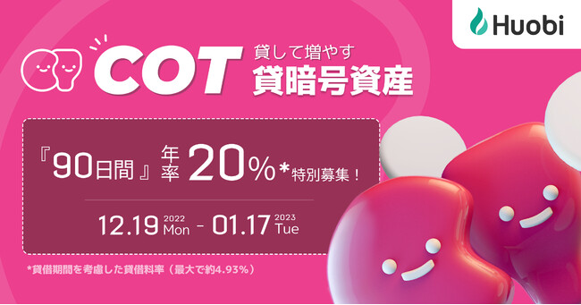 フォビジャパン株式会社は、コスプレトークン(COT)の貸暗号資産(貸借期間:90日、年率:20%)特別募集を2022年12月19日(月)より開始いたします。ぜひご参加ください!
