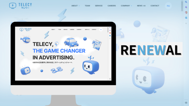 ブルーとライトグレーをベースに、各所に公式キャラクターのテレシーちゃんを登場させることでテレシーらしさを表現しつつ、これからも“広告業界のゲームチェンジャー”として挑戦していく私たちの想いを加え、ポップで柔軟で勇敢なカルチャーを表現したデザインに刷新しました。