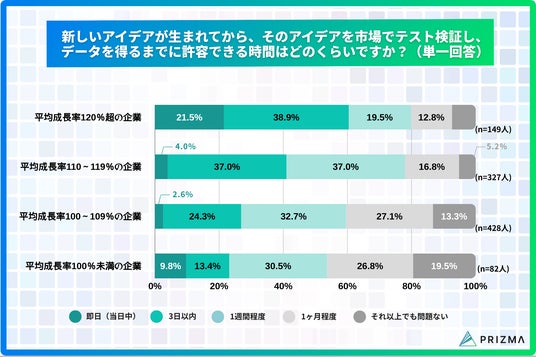 成長率が高い企業ほど「時間をかけて完璧なデータを待つ」ことよりも「素早くアイディアをアウトプットし、市場の反応を見る」ことを強く意識し、圧倒的なスピード感で動いていることが読み取れます。