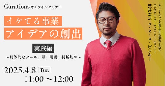 顧客企業のビジネス変革を成功に導くキュレーションズ株式会社(本社:東京都渋谷区、代表取締役社長:根本隆之、以下当社)は、『イケてる事業アイデアの創出:実践編 ~具体的なツール、量、期間、判断基準~』を2025年4月8日(火)に開催いたします