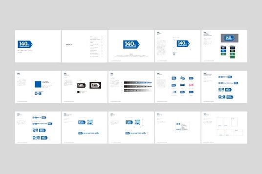 140周年企画のシンボルとして策定した周年ロゴは、名刺やオフィスで配布されるノベルティ、新聞広告などあらゆる場所に使われ、アウターブランディングとしても活用されています。