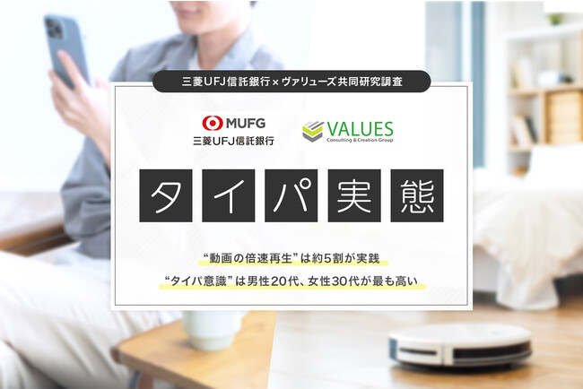 ネット行動分析サービスを提供する株式会社ヴァリューズ(本社:東京都港区、代表取締役社長:辻本 秀幸)と三菱UFJ信託銀行株式会社(本部:東京都千代田区、取締役社長:長島 巌)は協同で、三菱UFJ信託銀行が提供する情報銀行サービス「Dprimeの個人ユーザー」を対象にアンケートを実施し、Z世代を中心に注目が高まる「タイパ(タイムパフォーマンス=時間対効果)」の実態調査をおこないました。