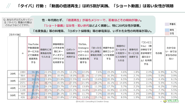 ◆「タイパ」行動:「動画の倍速再生」は約5割が実践、「ショート動画」は若い女性が視聴