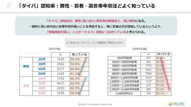 ◆「タイパ」認知率:男性・若者・高世帯年収ほどよく知っている