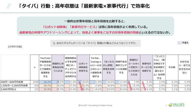 ◆「タイパ」行動:高年収層は「最新家電×家事代行」で効率化