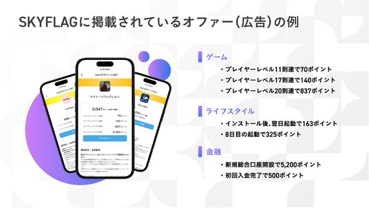 その中で、ユーザー視点に立った際に「おトクに楽しみながら利用できるポイントを取得できる」ことが必要不可欠であると考え、今回オファーウォール広告の『SKYFLAG』の導入を決定しました。