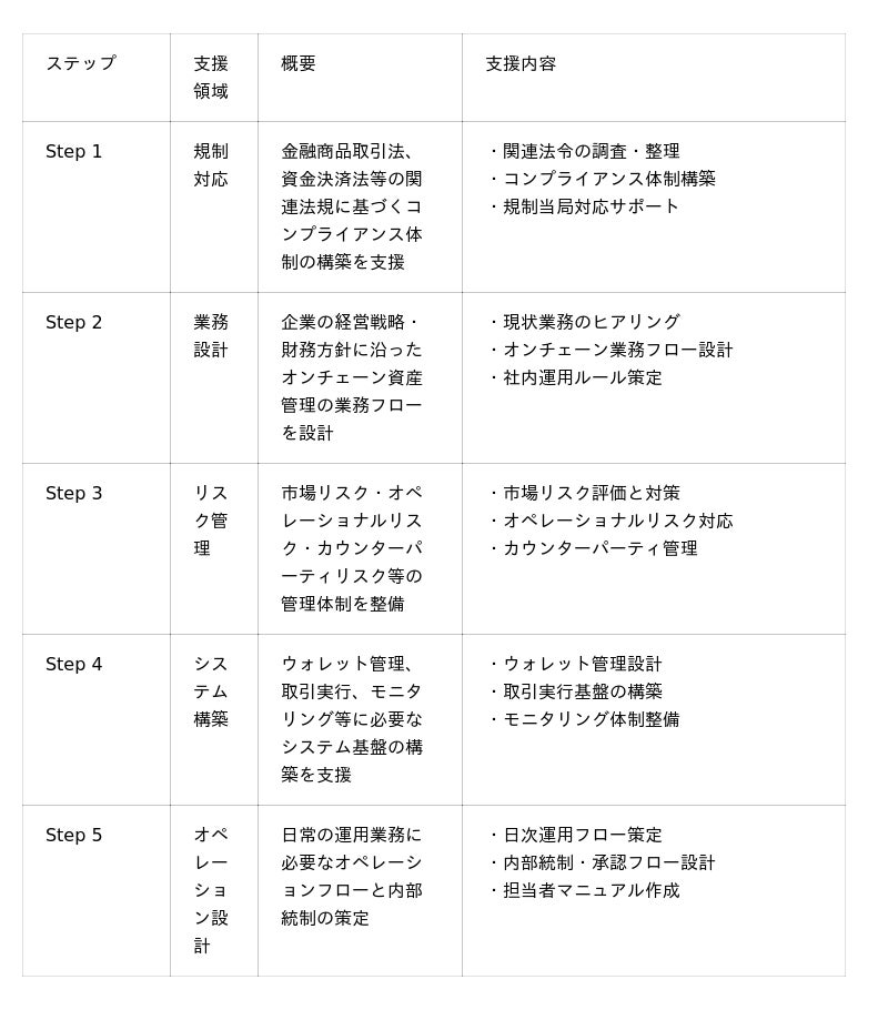 当社は、自社でのステーブルコイン(法定通貨の価値に連動するよう設計されたデジタル資産)運用実績や、企業向け支援の知見を活かし、日本企業がオンチェーン金融に安心して参入できる体制の構築を支援してまいります。