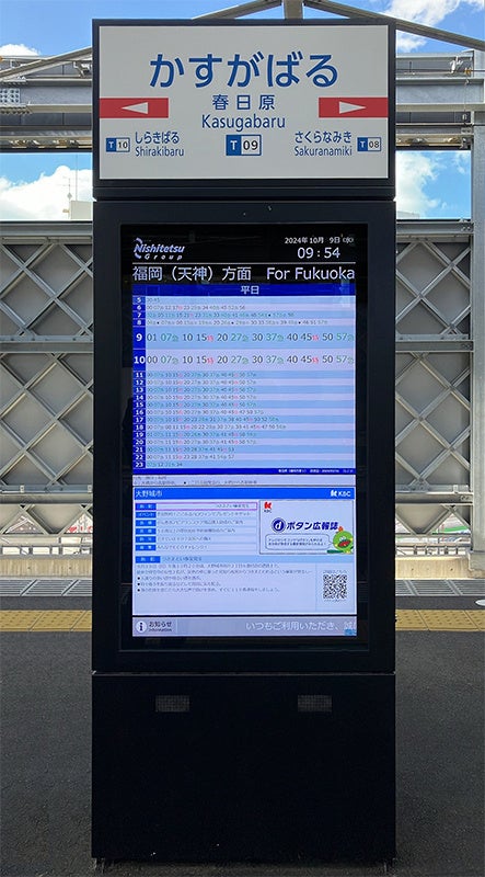 株式会社YEデジタルとマチディア株式会社(本社:福岡市中央区、代表取締役社長:宮崎 泰彦、以下、マチディア)は、この度、西日本鉄道株式会社(以下、西鉄)と大野城市の協力を得て、同市役所最寄り駅である西鉄天神大牟田線春日原駅に設置している西鉄が保有するデジタルサイネージに、市が活用している九州朝日放送株式会社(以下、KBC)「dボタン広報誌」の情報を表示する実証を開始いたしました。実証は2024年12月末までの予定です。
