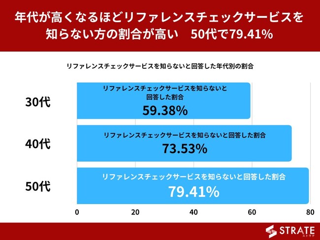 【年代が高くなるほどリファレンスチェックサービスを知らない方の割合が高い 50代で79.41%】