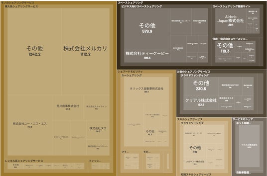 経済予測プラットフォーム「xenoBrain(ゼノブレイン)」を提供する株式会社xenodata lab.(本社:東京都台東区、代表取締役:関洋二郎、以下「ゼノデータ・ラボ」)は、シェアリングエコノミー業界の最新動向を分析したカオスマップを公開いたしました。本マップでは、国内のシェアリングエコノミー関連企業1,703社について、独自調査に基づき19の技術・製品別分野に体系化し、業界の市場規模の大きさを視覚的に確認できるデザインで市場構造を明らかにしています。