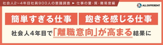 社会人2年目から4年目は、新人という肩書から卒業し自立への道を歩み始める時期です。今回の調査結果からは、現在の社会人2~4年目の若手社員が、新たに期待されている役割や仕事に対して不安を抱きつつも、期待に応えようと意気込む様子も見受けられました。しかし、業務内容や役割が一向に変わらず、新しい知識やスキルが身につかない状況になると、「この会社で働き続けてよいのだろうか」と離職を考え始める社員も増えることもわかり、特にその傾向は社会人4年目で表出していました。