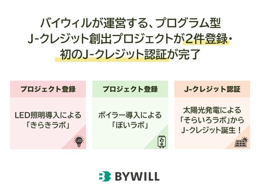 日本全国47都道府県のカーボンニュートラル実現を目指す株式会社バイウィル(本社:東京都中央区、代表取締役社長:下村 雄一郎、以下「当社」)は、第61回J-クレジット制度認証委員会において、当社が運営管理する