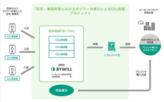 「住宅・事業所等におけるボイラーの導入によるCO2削減事業」(通称「ぼいラボ」)が登録されました。4つの方法論のプログラム型プロジェクトを運営することで、日本全国の中小企業や個人による小規模な脱炭素活動を取りこぼすことなくJ-クレジットに換え、日本の脱炭素化の推進、ひいてはカーボンニュートラル実現に貢献します。
