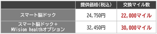 詳しくはWebサイト「JALマイレージパーク - スマート脳ドック」をご覧ください。