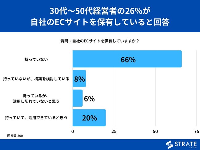 30代経営者の4割の方が、自社のECサイトを保有していて活用できていると考えているようです。