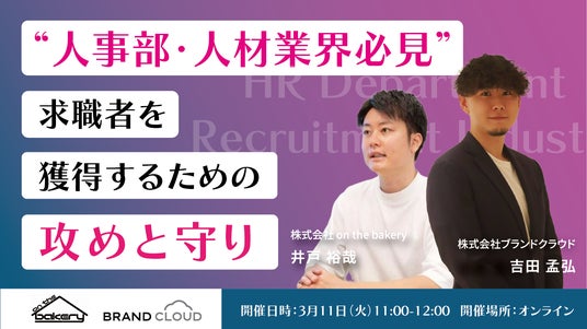 マーケティング支援と独自のSaaSを開発・提供する株式会社on the bakery(本社:神奈川県横浜市 代表取締役:井戸 裕哉)。この度、2025年3月11日(火)に開催されるオンラインセミナー「【人事部・人材業界必見】求職者を獲得するための攻めと守りセミナー」へ、弊社代表の井戸 裕哉が登壇いたします。