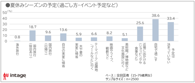株式会社インテージ(本社:東京都千代田区、代表取締役社長:檜垣 歩、以下インテージ)は、2022年の夏休みについて、全国の15歳から79歳の男女を対象に2022年6月21日~6月23日に実施した調査結果を公開します。