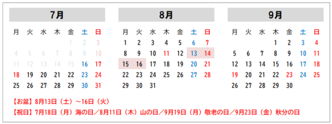 〈参考〉2022年 夏休みシーズンカレンダー