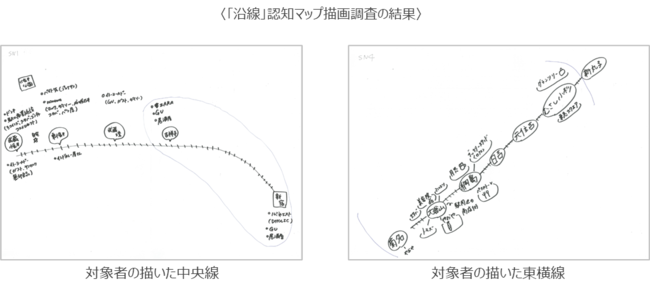 そこで、ジェイアール東日本企画 駅消費研究センターでは利用者視点での鉄道沿線像に関する基礎的調査を実施。JR中央線、東急東横線を対象に居住者に対し「沿線」の利用実態・意識アンケート調査、「沿線」の認知・生活像インタビュー調査(「沿線」認知マップ描画調査含む)を行って、多角的に沿線像を捉えました。