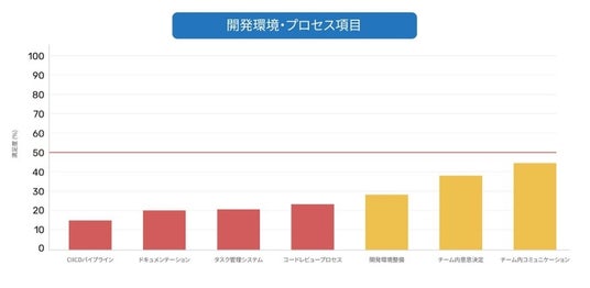 さらに、開発者体験(Developer Experience)に関する指標も非常に厳しい結果となっています。CI/CDパイプラインに対する満足度は14.2%、ドキュメント管理システムに至っては17.5%と、いずれも期待水準を大きく下回る状況でした。