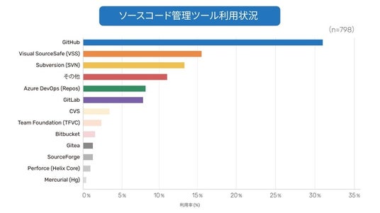 まず、多くの開発現場では、Visual SourceSafe(15.8%)やSubversion(13.7%)といったサポート終了ツールや従来型ツールが依然として使用されている実態が確認されました。これにより、最新のAI開発支援機能や革新的なAIツールの活用が制限され、組織間で技術的競争力に格差が生じる可能性が懸念されます。