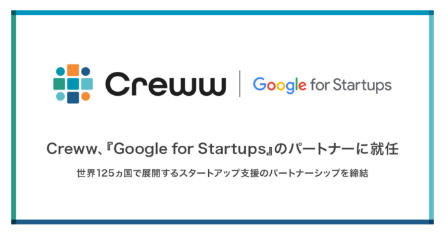 Creww株式会社(代表取締役:伊地知 天、以下、「Creww(クルー)」)は、Google が世界125ヵ国で展開するスタートアップ支援プログラム『Google for Startups』のパートナーに就任したことをお知らせします。