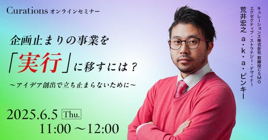 顧客企業のビジネス変革を成功に導くキュレーションズ株式会社(本社:東京都渋谷区、代表取締役社長:根本隆之、以下当社)は、「企画止まりの事業を「実行」に移すには? ~アイデア創出で立ち止まらないために~」を2025年6月5日(木)に開催いたします。