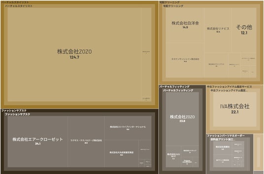 FashTech(ファッションテック)業界カオスマップカオスマップ掲載ページでは、データ可視化ツールを利用して、詳細をご確認いただけます。