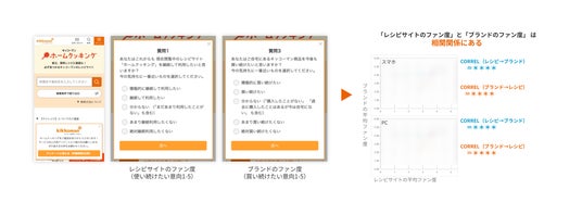 キッコーマンは、レシピサイトを通じてブランドのファン育成を目指し、具体的な施策を実施しました。まず、レシピサイトのファンとキッコーマンブランドのファンの関係性を明確にするため、アンケート調査を行い、両者に相関性があることを確認しました。これにより、レシピサイトのファン度を高めることがブランドのファン度向上に寄与する可能性が示されました。