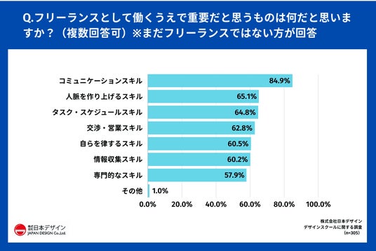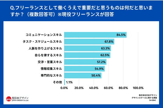 また、フリーランスとして働く上で最も重要なスキルとして「コミュニケーションスキル」が最多回答となり、現役フリーランス・未経験者を問わず、共通してその重要性が認識されていることが明らかになりました。