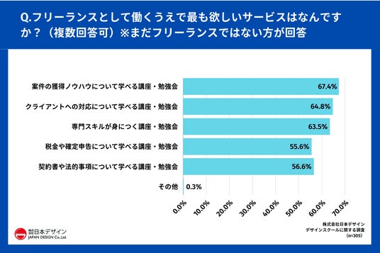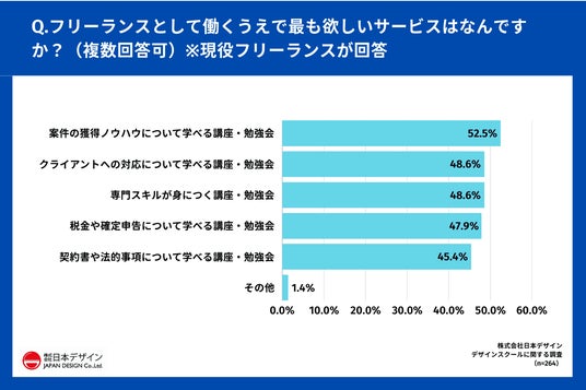 さらに、フリーランスが欲しいサービスとして「案件の獲得ノウハウを学べる講座・勉強会」が最も求められている結果となりました。