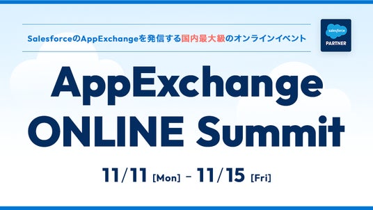 AppExchange ONLINE Summit 2024は、Salesforceの機能を拡張するビジネスアプリのマーケットプレイス「AppExchange」の提供パートナーが一堂に会し、最新の営業・マーケティングの成果創出、生産性改善をサポートする多数のアプリのデモンストレーションや活用事例をご紹介する、セールス・マーケティング領域における国内最大級のオンラインイベントです。