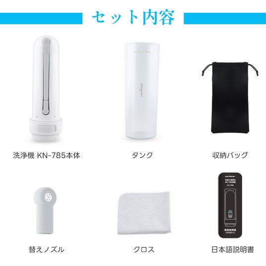 ■ 【いつでも、どこでも】ポケットサイズの洗浄力KN-785は全長わずか約17cm・重量約262gのコンパクト設計。180mlのタンク一体型で、どんなバッグにもすっぽり収まり、外出時の持ち運びもスマート。出張や旅行先でも、いつも通りの清潔習慣を保てます。
