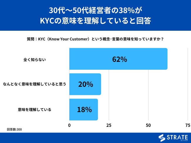 30代経営者の4割ほどの方が、KYCの意味を理解していることが分かりました。